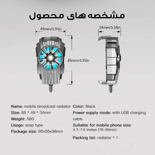 خنک کننده مدل G6 با دفع سریع حرارت باعث کاهش دمای گوشی و محافظت از سخت افزار و باتری میشود و همچنین از
