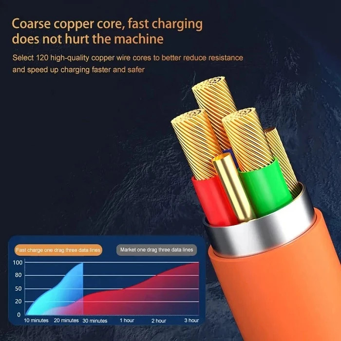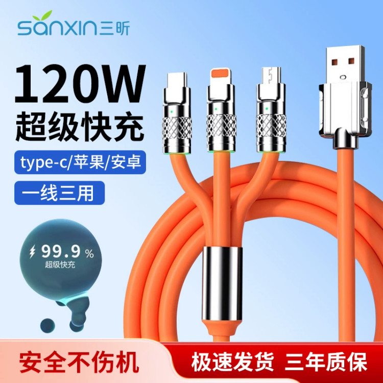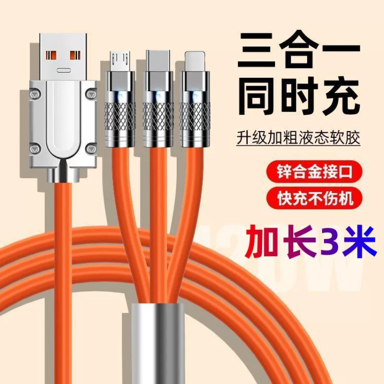 کابل سه سر با شارژ سریع و با یک رابط لایتینگ رابط تایپ سی و رابط میکرو یو اس بی چه آیفون چه سامسونگ هواوی وان پلاس، شیامئ یا هر گوشی هوشمند دیگری که داشته باشید با این کابل شارژ شیک 3 در 1 میتوانید دستگاه خود را با خیال راحت و سریع شارژ کنید . سازگار با سیستم عامل iOS و اندروید این کابل از مواد مرغوب ساخته شده است و حالت سیلیکونی دارد و رابط های آن فلزی می باشد و همراه با نور که زیبایی کابل را چندین برابر کرده است.