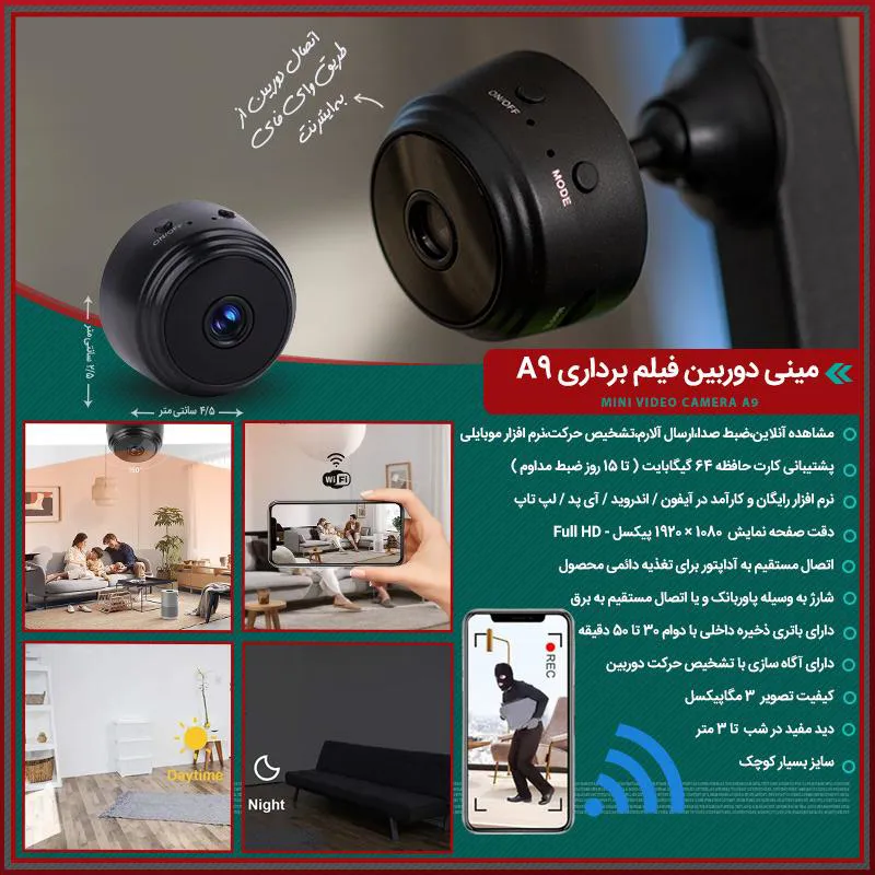 وزن 20 گرم مشخصات ظاهری بیسیم جمعوجور نوع اتصال بیسیم (Wi-Fi) نوع حسگر تصویر CMOS نوع لنز استاندارد رزولوشنهای تصویر HD 1080P قابلیتهای دوربین امنیتی و نظارتی دید در شب شیار کارت حافظه قابلیت ضبط صدا ماسک محدوده حریم شخصی کارت حافظه قابل پشتیبانی میکرو اس دی کارت تا ظرفیت 128 گیگابایت منبع تغذیه باتری لیتیوم داخلی قابل شارژ